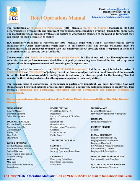 Read Online hotel operations manual Paperback Library Genesis